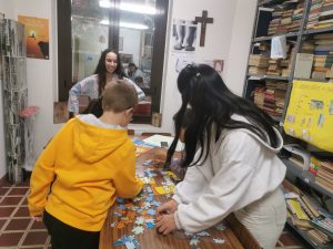 Lo hemos dado todo con los juegos de mesa, el ping-pong y el futbolín, pero también hemos aprovechado para pintar y resolver los enigmas de esta semana.